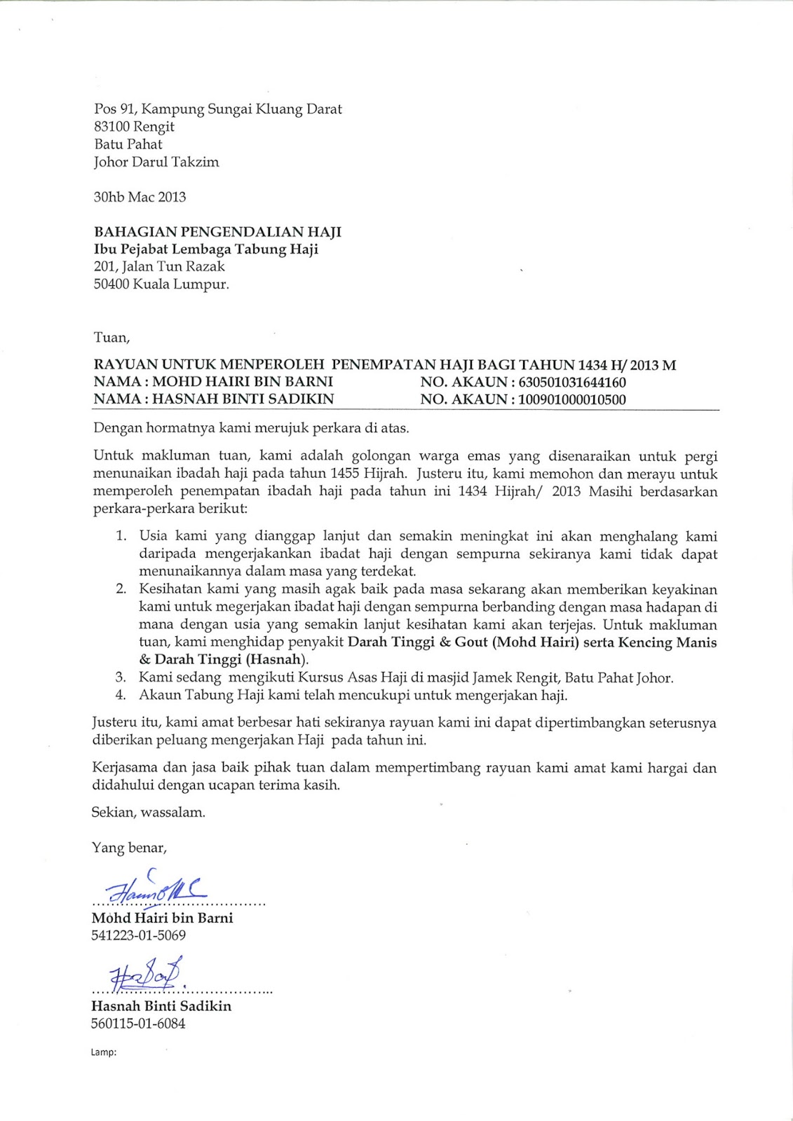 Format Surat Rayuan Haji 2019 - Kuora Q via kuoraq.blogspot.com